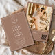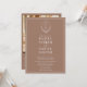 Cette faire-part de mariage marron mocha conviendra parfaitement aux couples qui aiment les tons riches et terreux et le design intemporel. La couleur mocha chaleureuse apporte une touche de luxe sobre, tandis que la disposition classique de la crête garde l'aspect élégant et traditionnel. Nous aimons qu'il dispose d'une photo personnelle — une si belle façon de partager votre histoire — avec un code QR pratique pour les RSVP numériques ou un lien direct vers votre site mariage. La combinaison de lignes épurées, de typographie moderne et d'une palette douce et neutre donne à cette invitation une atmosphère raffinée et organique. Imprimé sur des cartons de qualité supérieure, ce design s'associe magnifiquement aux accents crème, ivoire ou or et convient à la fois rustique-chic et mariage classique moderne.