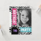 Un motif zèbre noir et blanc très moderne et élégant qui s'adapte bien aux photos en noir et blanc de votre fille célébrant son seizième anniversaire ! Des photos en couleurs très contrastées ou sélectives auraient aussi l'air tranchant ! Ce design présente des bandes de couleurs audacieuses rose chaud et bleu électrique, du texte en gros bloc et un motif d'impression zèbre sauvage pour attirer l'attention sur la partie la plus importante de la page - votre fille d'anniversaire! Invitation toutes ses amies à une fête spéciale sucrée 16 ou toute fête d'anniversaire ado ou d'anniversaire avec cette jolie carte féminine, haute couture et tendance.. Il dispose de plusieurs zones de texte faciles à customiser au verso pour le nom de votre fille d'anniversaire et tous les détails de la soirée de sommeil ou de fête, ainsi que les coordonnées de rsvp. Cliquez sur le bouton de personnaliser pratique pour redimensionner/repositionner votre photo si nécessaire et s'assurer qu'elle couvre toute la zone photo.