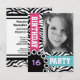 Invitation Mod Bright Zebra Imprimer fête d'anniversaire avec