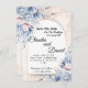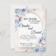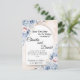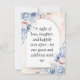 Cette invitation de mariage présente un design floral doux et romantique avec des fleurs pastel bleu et rose saumon. Le texte est affiché de manière élégante sur un fond semi-arqué, créant un look sophistiqué et moderne. Les noms sont mis en valeur dans une police de caractères script élégante, avec des détails supplémentaires sur la cérémonie de mariage, y compris la date, l'heure et le lieu. L'invitation comprend également un numéro de contact pour les invités. Les accents floraux délicats de style aquarelle ajoutent un charme intemporel, ce qui en fait un choix parfait pour une annonce de mariage de rêve.