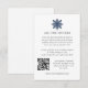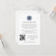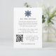 Conçu pour coordonner avec notre collection de mariage élégant en hiver flocon de neige, ce modèle de carte de mariage élégant sur le thème de la neige comporte un petit flocon de neige dans un style minimaliste en bleu marine surmontant vos détails d'hébergement de texte personnalisés et votre code QR.