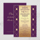 Invitation Modèle de diamant doré sur menu de mariage violet