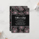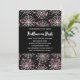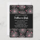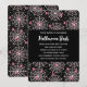 Une invitation à une fête d'Halloween avec un motif mignon et sans couture avec des toiles d'araignée blanches et des araignées roses.