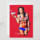 Jolie brune, très en forme, modèle bikini portant un maillot de bain de style drapeau américain rouge, blanc et bleu et tenant un cocktail martini de couleur similaire. à personnaliser, personnalisez en changeant votre nom