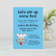 Modèle d'invitation pour la fête d'anniversaire. Invitations personnalisés pour les enfants. Personnalisez le texte du faire-part, le numéro d'âge et la couleur de l'arrière - plan. Dessin amusant du chef pâtissier cuisinier dessin animé tenant whisk et cuillère en bois.