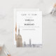 Ce modèle de notification de date à imprimer soi-même présente une peinture à l'aquarelle de la skyline de la ville de New York. Utilisez ce modèle pour modifier tout le texte, la police, la couleur de la police et la couleur de fond pour correspondre au style de votre événement. Ajoutez facilement votre propre photo ou graphique à ce modèle.