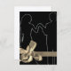 Créez votre propre invitation ou annonce en utilisant ce modèle ! Silhouette de mariés sur fond noir avec un nœud doré. Imprimé en haute définition sur du papier scintillant champagne ! Facile à personnaliser ! Cliquez simplement sur "personnaliser davantage" pour ajouter du texte, des couleurs et des images !