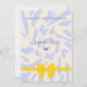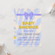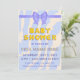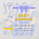 modèle d'invitation baby shower et carte de remerciements. Carte de baby shower recto verso en style y2k, ensemble fête de vacances avec face et côté arrière. Texte de police de bulle jaune sur un arrière - plan clair avec des taches de liquide bleu