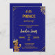 Adorable marine bleu et or Afro-Amérique prince baby shower invitation modèle. Mignonnette aux accents bleu et or.