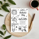 Célébrez cette grande réussite avec cette invitation de remise de diplômes amusante et fantaisiste ! Avec des illustrations dessinées à la main et des gribouillis ludiques, cette invitation est parfaite pour marquer votre remise de diplômes de l'université ou du lycée. Son design funky et joyeux dit tout : « Félicitations au Lauréat ! ». Faites ressortir votre fête de remise de diplômes avec cette invitation unique, drôle et créative que vos amis et votre famille adoreront. Idéal pour quiconque recherche une célébration de remise de diplômes originale et dessinée à la main.
