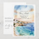 Définissez le ton de votre mariage à destination avec cette élégante invitation de mariage inspirée de Santorin, mettant en vedette un design côtier romantique à l'aquarelle inspiré de la Méditerranée.