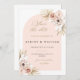 Modèle d'invitation élégant pour mariage 'save the date' avec arche florale pastel et teinte rosée.