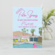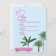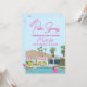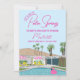 Rendez votre enterrement de vie de jeune fille inoubliable avec cette invitation élégante pour une fête de bachelorette à Palm Springs ! Avec une maison de style rétro dessinée à la main, ce design vibrant capture l'esprit chic et décontracté de Palm Springs avec une scène au bord de la piscine, des palmiers et un flotteur flamant rose.