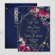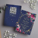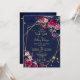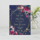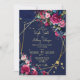Modèle rose rose bordeaux vert marine bleu arrière - plan or géométrique cadre faire-part de mariage à fleurs avec code QR RSVP à l'arrière.