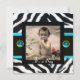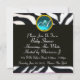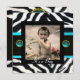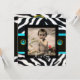 Invitation MODÈLE PHOTO de monogramme BLEU BLEU BLACK ZEBRA F