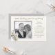 Invitation de fête pour les noces d'argent avec modèle de photo. Couleur écru avec un cadre gris argenté autour d'une image du couple. Des orchidées blanches avec des centres jaunes ornent le coin inférieur et le texte est également gris argenté. Personnalisez une ligne en haut avec l'année de mariage et le type de rassemblement - fête ou renouvellement de vœux - et ajoutez facilement toutes les informations de la fête en utilisant le modèle fourni. Ajoutez des espaces si nécessaire pour équilibrer le texte. Le verso est gris uni.