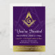 Vous avez besoin de modèles d'invitation maçonniques personnalisés pour votre prochain Grand Lodge ? Voici des invitations masoniques violettes et or classe que vous pouvez personnaliser pour votre Installation annuelle des Officiers, Grand Lodge Communication Annuelle, ou toute autre célébration spéciale. Le design unique et élégant comprend un carré doré et le logo de boussole de la franc-maçonnerie sur un arrière - plan violet profond avec un accent de barre d'or au fond. Si vous cherchez des cartes d'invitation pour l'installation maçonnique qui ne sont pas pour grand lodge, pas d'inquiétude - vous pouvez facilement changer la couleur arrière - plan en noir, bleu marine, ou n'importe quelle couleur pour correspondre à votre thème également. Ces invitations maçonniques personnalisées sont recto verso, vous pouvez ajouter des détails supplémentaires sur l'arrière, ainsi que des photos si vous le souhaitez. Catégorie : installation d'invitations maçonniques ; invitations freemason ; et cartes d'invitation d'installation maçonnique. Couleurs : violet profond et or