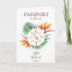 Destination Mariage Floral Invitation moderne et colorée, comme passeport. Cimetière monogramme de boussole sur la première page, avec strelitzia. Conception parfaite pour votre mariage d'été sur la plage. Ajoutez le code QR de votre site Web mariage