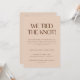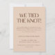 Modern Beige Wedding "We Tied the Knot!" Elopement & Reception Party Invitation. Personalize this minimalistic earthy beige and terracotta elopement announcement card with a custom "just married" message, and reception "happily ever after party" invite info for family, friends and loved ones. Personalize further with bride and groom names, elopement date, and a wedding photo on the back.