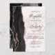 Invitation Modern Black Agate Rose Gold Marble Wedding