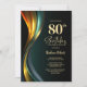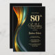 Invite your friends and loved ones to your 80th birthday celebration with this sleek black invitation featuring a vibrant abstract wave border. The customizable text area in this invitation template allows you to include all the necessary details for your special birthday celebration, including the date, time, venue, and RSVP information. A variety of paper types and corner styles are available for your unique invitations, along with the option to download if you prefer a digital format.