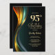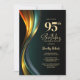 Invite your friends and loved ones to your 95th birthday celebration with this sleek black invitation featuring a vibrant abstract wave border. The customizable text area in this invitation template allows you to include all the necessary details for your special birthday celebration, including the date, time, venue, and RSVP information. A variety of paper types and corner styles are available for your unique invitations, along with the option to download if you prefer a digital format.