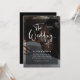 These modern, elegant wedding invitations feature your own personal photo covering the background completely. A sheer black overlay contains white trendy script typography, and the back of the card is black. A glam, stylish look your guests will love!