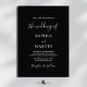 This sleek and sophisticated wedding invitation features a bold black-and-white palette paired with graceful script typography and a customizable photo frame. The design blends modern minimalism with heartfelt elegance, allowing your favorite image and wedding details to shine.