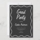 Celebrate your graduate with this modern black charcoal graduation party invitation featuring a stylish photo collage layout and elegant wavy border frame. This customizable grad party invite includes space for three graduate photos, graduate name, school name, class year, event details, and RSVP information. The dark charcoal background paired with a shimmering wavy frame creates a sophisticated and memorable design perfect for high school or college graduation celebrations. Easily personalize the photos, text, date, address, and RSVP details to create a unique graduation invitation for your special celebration.