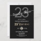 A modern minimalist design featuring elegant calligraphy on a black background. Customize the details for a cool Birthday Celebration.