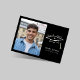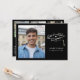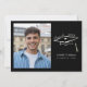 Celebrate your graduate with this modern black photo graduation party card featuring a bold, minimalist layout and elegant typography. The front highlights a favorite senior photo with a classic graduation cap design, while the back showcases a stylish multi-photo collage with party details.