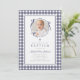 Modern Blue Gingham Photo Boy Baptism Invitation. For best results upload a square image of the baby.