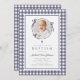 Invitation Modern Blue Gingham Photo Boy Baptism