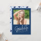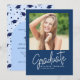 Invitation Modern Blue White Script Photo Graduation Party