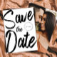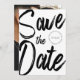 Modern Chic Enregistrez la carte Date avec une grande typographie en gras surdimensionnée en noir style marqueur d'écriture sur un arrière - plan blanc propre. Nom personnalisé et cercle de date sur le devant. Le dos est parfait pour afficher votre propre photo. Modifiable en cliquant sur le bouton "personnaliser". N'oubliez pas de consulter les éléments de coordination de la collection pour une suite mariage moderne, amusante et unique.