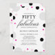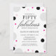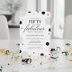 This modern and sleek invitation combines elegant script font and minimal typography on a custom photo of the birthday girl to celebrate 50 and fabulous in the best way ever. A combination of grey, pink and black polka dots can be rearranged on the page to accomodate any text. Contact the designer for more design customization options.