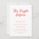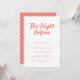 The Modern Coral Script Wedding Rehearsal Dinner Invitation features a clean white background with elegant coral pink script lettering that reads “The Night Before.” The design is modern, minimalist, and refined, making it perfect for a stylish pre-wedding celebration.
