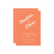This Modern Coral Union Wedding Invitation features a clean and stylish layout with a warm coral pink background and bold white script typography. The couple’s names are displayed in a modern diagonal layout, creating a fresh and contemporary look.