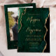 Invitation Modern Emerald Green Agate Script Photo Wedding