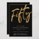 Invitation Modern Fifty Script Gold Black 50th Birthday