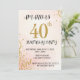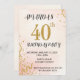 Celebrate the big 4-0 with this stylish and modern birthday invitation! The design features bold, shimmering faux gold glitter confetti sprinkled over a chic peachy-blush watercolor background, perfect for a glamorous party. This personalized invitation is ideal for both men and women, and is easily customizable . Announce your party with sparkle and flair!