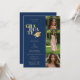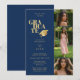Invitation Modern Graduate Collage 3-Photos Navy Blue & Gold