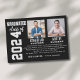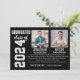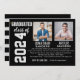 Linda Invitacion de sus graduados de secundaria con estilo elegante, incluye invitación de graduación y la invitación de fiesta. La tarjeta de dos caras está diseñada para 2 fotos con un diseño sencillo y masculino. Los colores negro y plateado . Un patrón de rayas doradas se viste por la parte posterior de la tarjeta. **Consejo de fotos: recorta tus fotos en una forma cuadrada antes de subir**