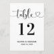 Set the tone for your wedding reception with this modern heart script table number card. The design pairs a flowing calligraphy "Table" header with a delicate heart accent and bold oversized numbering for easy visibility. Couple names and wedding date appear below in clean, timeless typography. Fully customizable to match your celebration. Please note, each table number must be individually personalized and added to your cart one at a time.