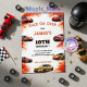 Get ready to race into excitement with this high-octane design! Featuring bold sports cars zooming across the invitation, dynamic tire elements, and a sleek layout, this invitation sets the perfect tone for a thrilling birthday celebration. The vibrant colors and energetic composition capture the spirit of speed and adventure, making it an ideal choice for little racing enthusiasts! 🚗🔥