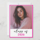 Modern and fun, this graduation party invitation combines classic black and white with accents of bright hot pink. It's minimal design is a simple and fun design to celebrate the graduate's big day. The back displays your graduate's favorite photo. Created by Simply Farmhouse Press.