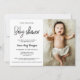 Ideal for printed invitations or digital sharing, this design appeals to parents searching Google for unique baby shower invitations with photos that feel personal and elevated.