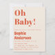 Celebrate the upcoming arrival in style with this chic retro-inspired baby shower invitation. Featuring bold coral typography on a soft cream background, this modern minimalist design makes a statement with its playful “Oh Baby!” headline and clean, elegant layout.