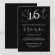 Invitation Modern Minimalist Sweet 16 Black Pink Birthday