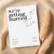 Make a bold, contemporary statement with this modern minimalist save the date invitation. Featuring oversized typography that proudly announces “we’re getting married,” this design embraces clean lines, generous white space, and effortless sophistication. The handwritten-style names add a personal, romantic touch, while the subtle heart accents bring warmth without overwhelming the sleek aesthetic.